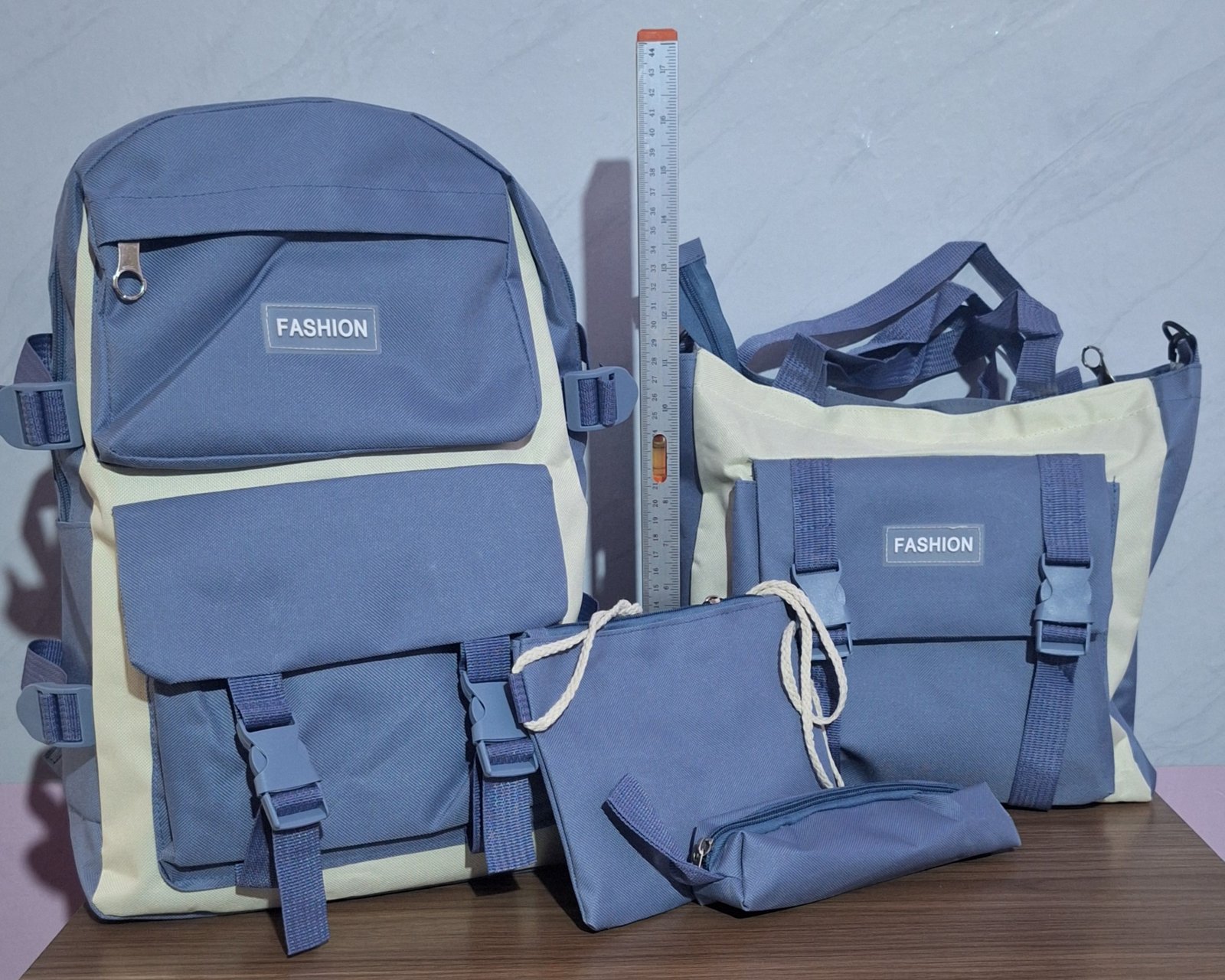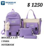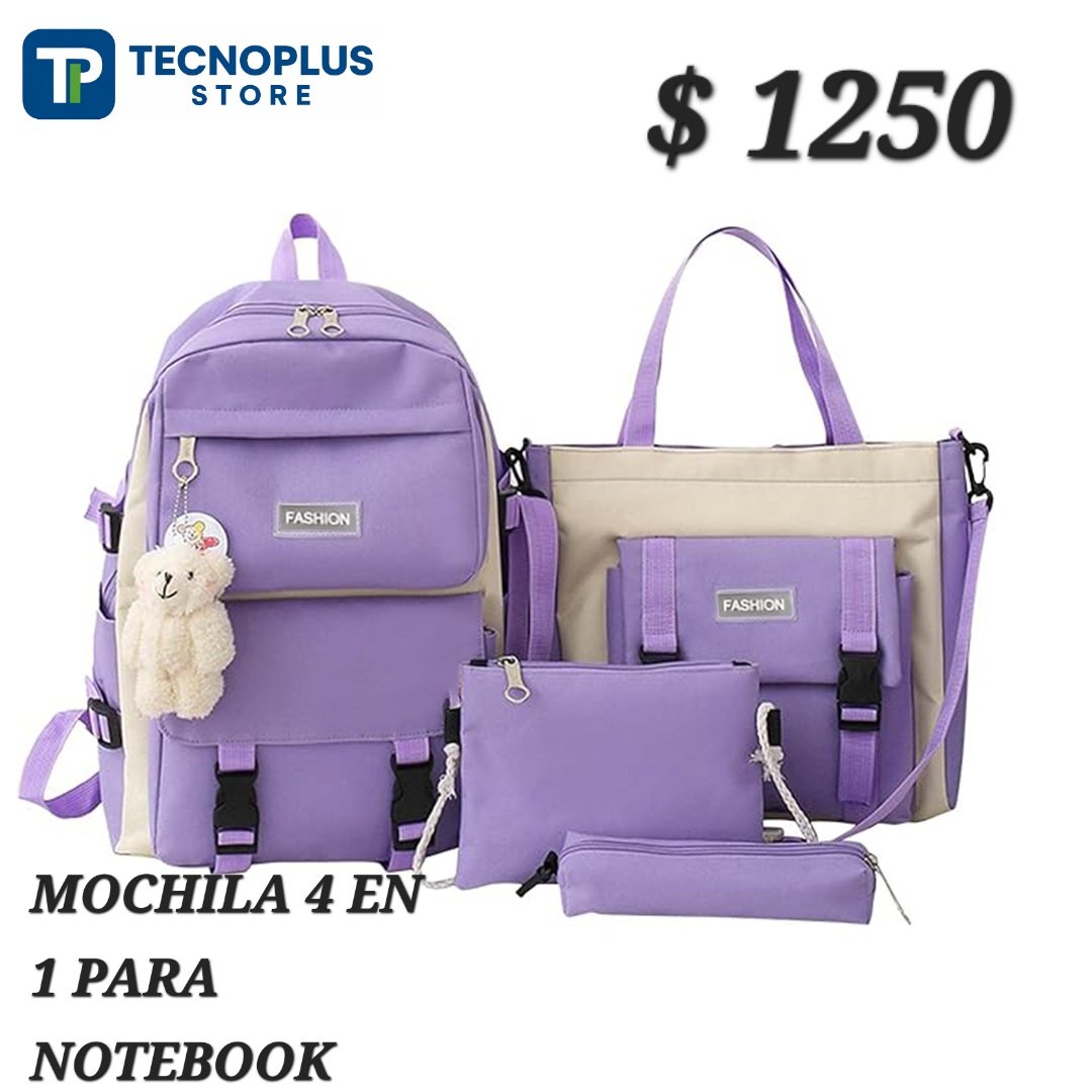 Incluye 4 piezas: Mochila, cartuchera, bolso mediano y bolso pequeño.